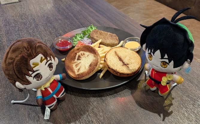 「なんか僕とジョウイのハンバーガーです!カイルさん!上のパンと下のパンとで半分こしましょう!」